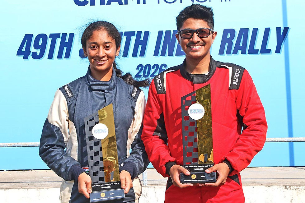 The 37-year-old Kadur’s pace through the weekend was literally as hot as the weather itself as he blitzed the combined FIA Asia-Pacific Rally Championship powered by Vamcy Merla and the FMSCI Indian National Rally Championship grids while yet again showcasing his undoubted talent. Finishing in second spot in the APRC was Hyderabad’s Jeet Jhabkah and co-driver Musa Sherif from Kasargod, while the Spanish husband-wife team of Edgar Vigo Lopez and Fatima Ameneiro Teijeiro completed the podium.